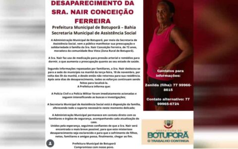 Bacia do Paramirim Botuporã Botuporã mobiliza forças de segurança e comunidade em busca de idosa desaparecida